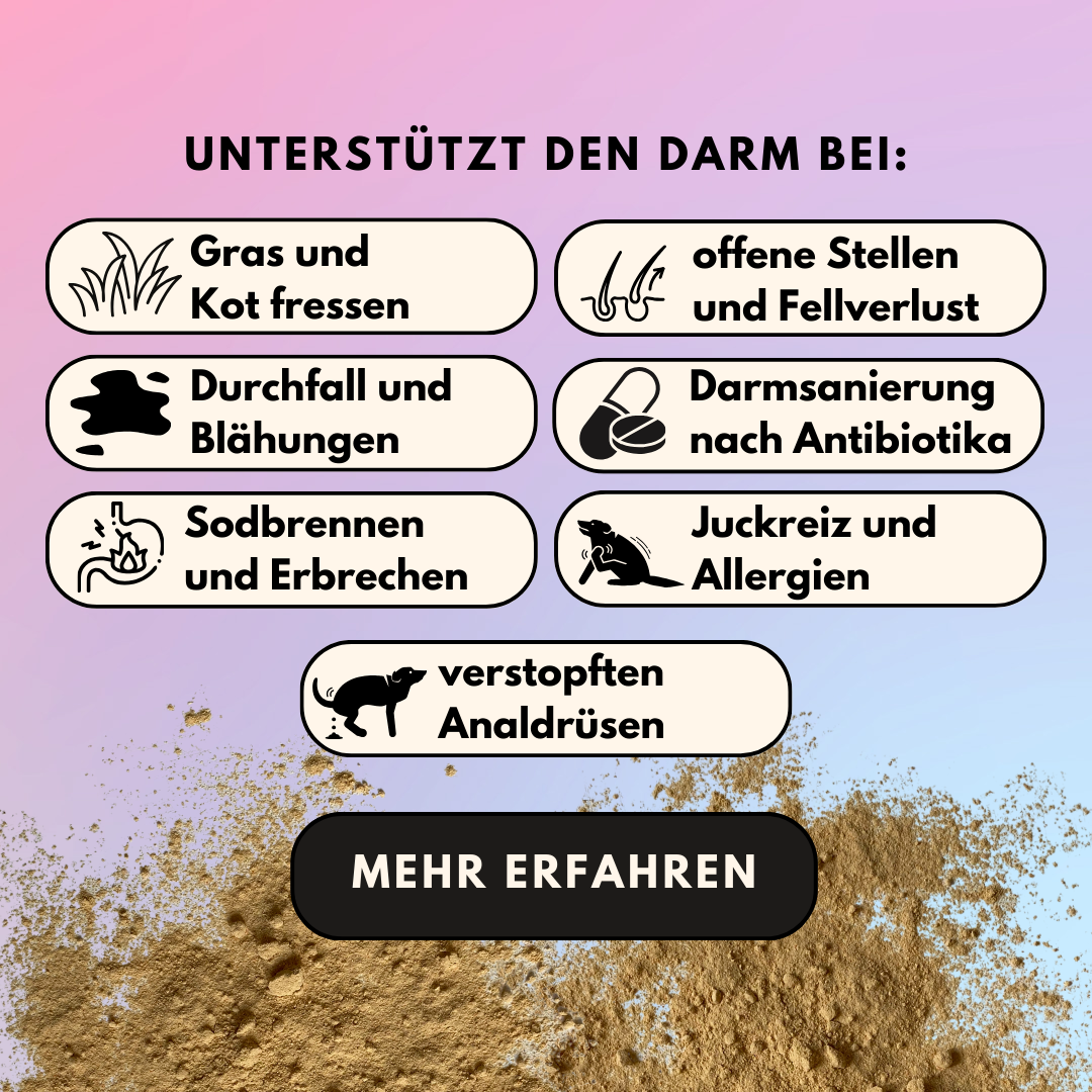 Wir empfehlen unser Darmpulver zur Unterstützung deines Hundes.